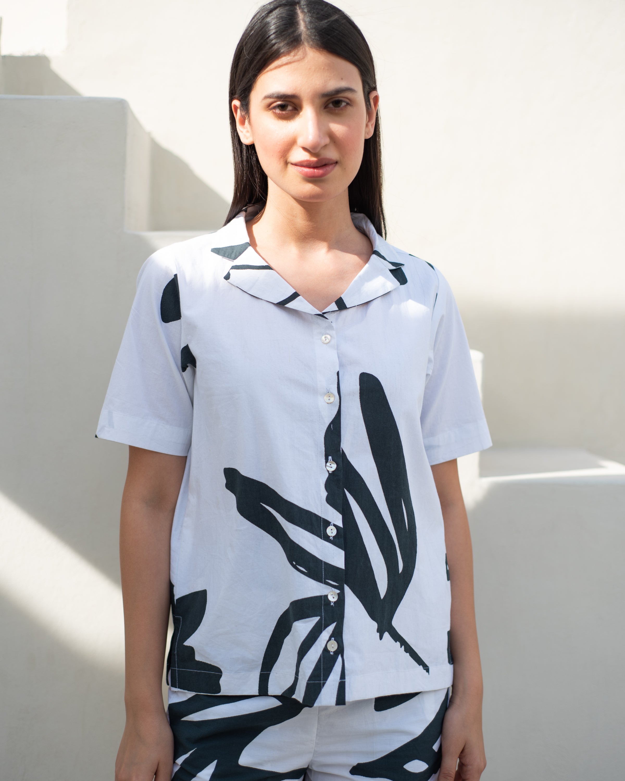 Experience the perfect blend of modern style and sophistication with our Antares Cuban Collar Co-ord Set. This Co-ord features a contrast botanical print on soft cottons, creating a comfortable and stylish outfit for both formal and casual occasions. Elevate your wardrobe with this must-have ensemble.