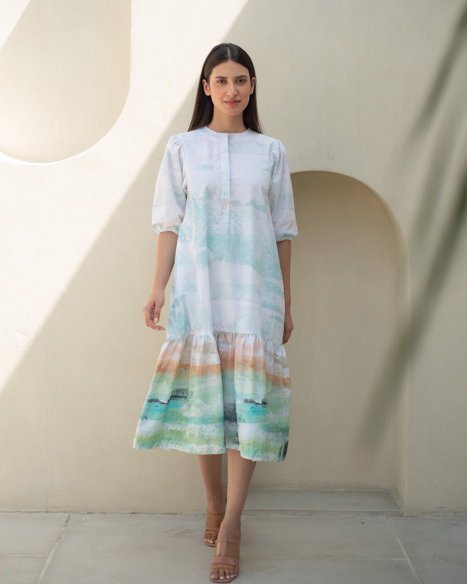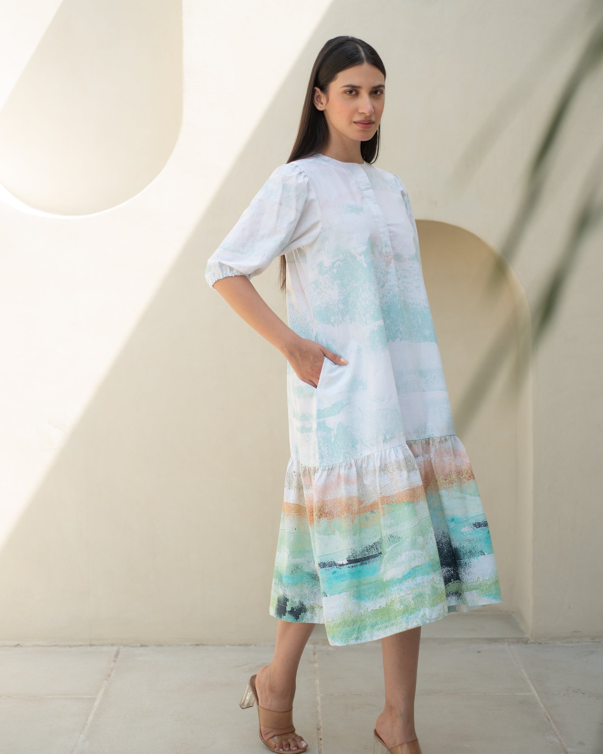 Indulge in the epitome of everyday luxury with our Moss Dress, crafted from breathable cottons and adorned with an art-inspired print. This piece is both minimal and functional, offering the perfect blend of comfort and sophistication.