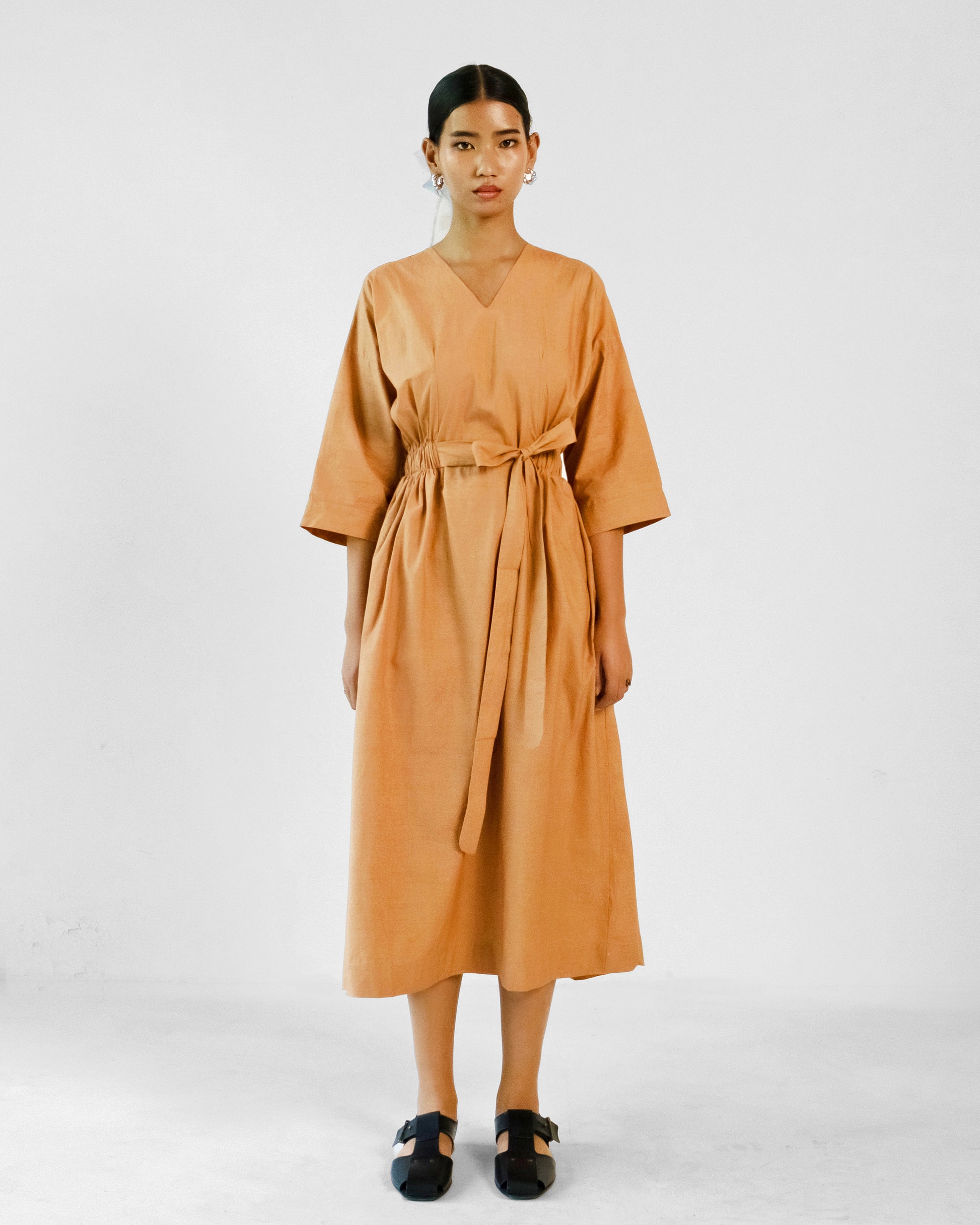 Elevate your wardrobe with our luxurious Madera Belt Dress. This V-neck cotton dress features elastic details on the waist and a versatile belt for custom styling. Perfect for both casual and elevated occasions, it's the epitome of sophistication and exclusivity. Dress to impress in this elegant and tasteful piece.