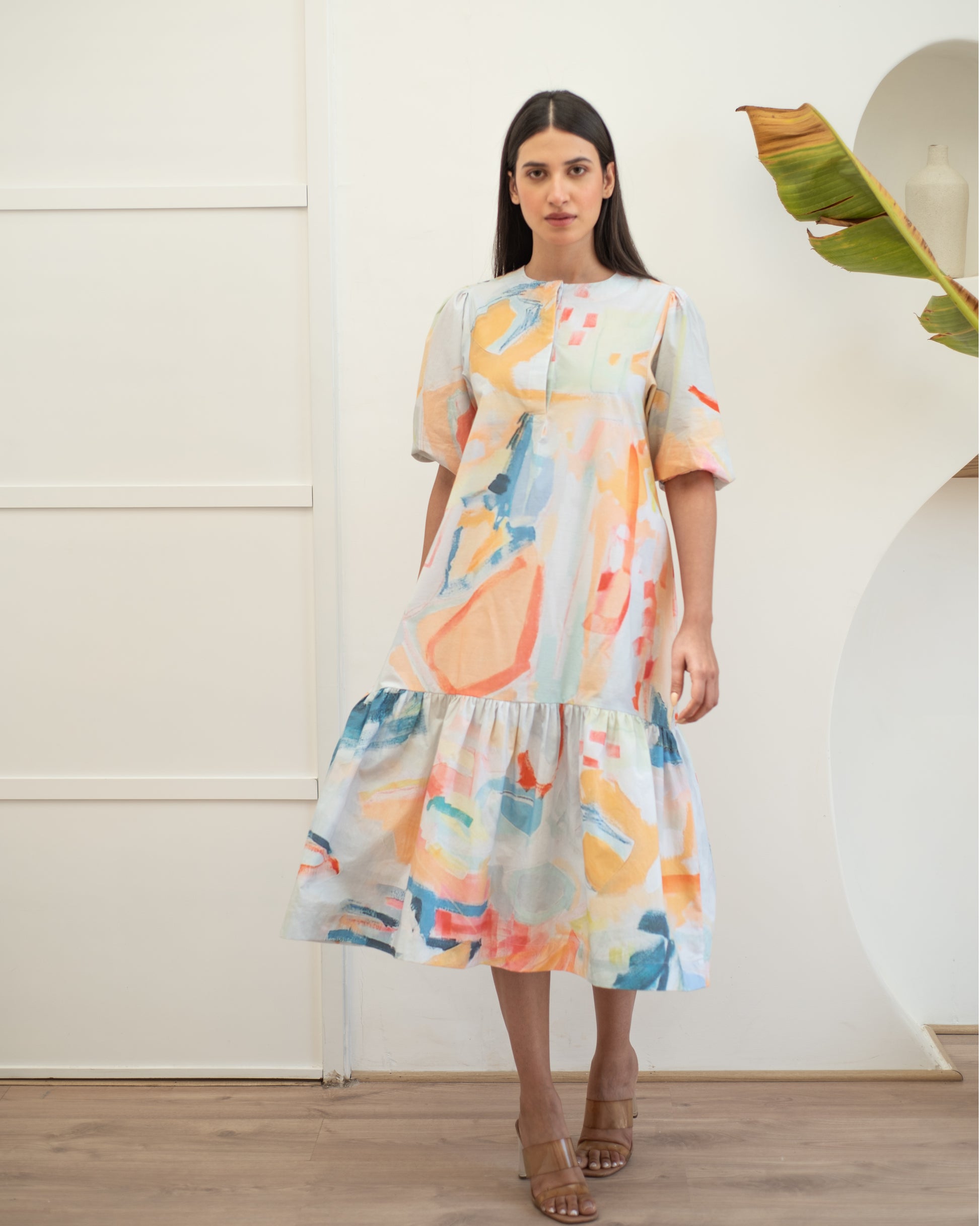 Indulge in the epitome of everyday luxury with our ClaudeDress, crafted from breathable cottons and adorned with an art-inspired print. This piece is both minimal and functional, offering the perfect blend of comfort and sophistication.