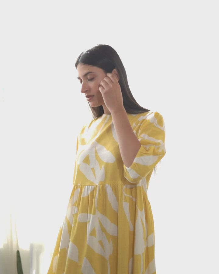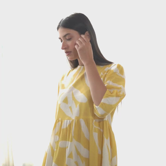 This bright yellow Dress in floral print is a stunner. It is crafted in cotton poplin fabric. The gather detail in each tier makes it more exclusive and easy. It goes well with your