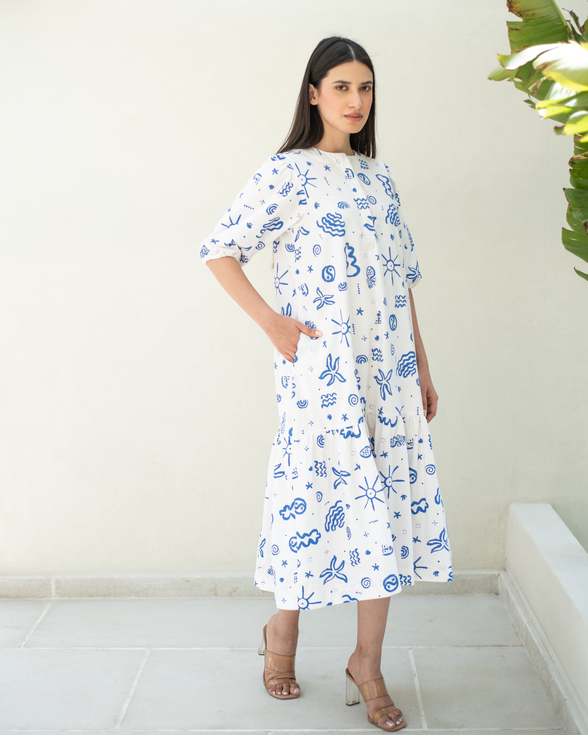 Effortlessly chic and perfect for any summer adventure, our Doodle Dress is a must-have for any fashion-forward individual. Made from high-quality cotton poplin, this dress will keep you cool and comfortable while exuding an air of casual elegance. Whether exploring new cities or running errands, this versatile dress is sure to become a staple in your wardrobe.
