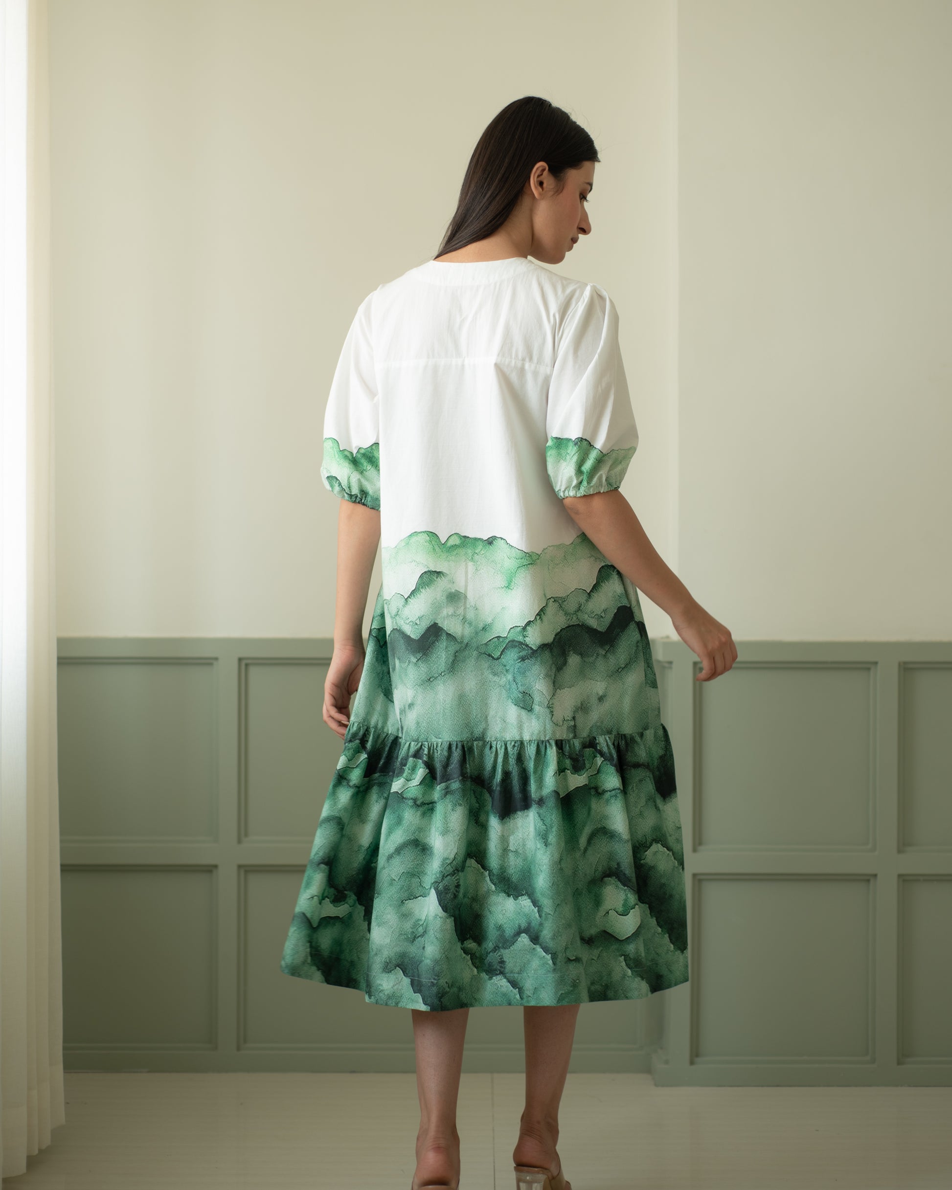 Indulge in the art of fashion with our Easle Dress. Its watercolour inspired print exudes sophistication and elegance, while the lightweight cotton fabric keeps you comfortable and chic during summer. Experience the beauty and breathability of this premium dress.